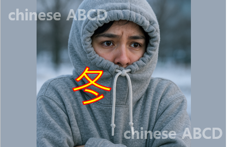겨울(冬)은 추위(冫) 속에 두 끈으로 몸을 감싸 움츠린 사람이다.