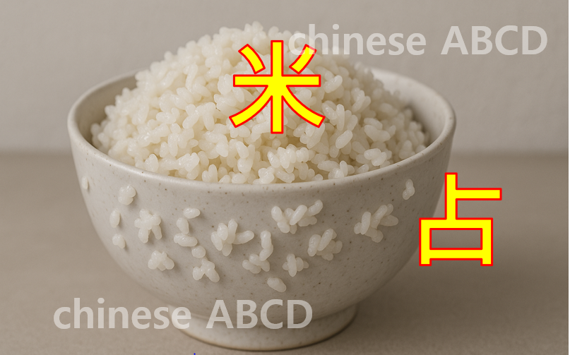 ‘粘(점)’ 한자는 쌀(米)의 점성이 占(점복/점유)의 성질처럼 자리를 점하고 놓지 않는 粘 쌀의 찰기와 같은 특징에서 왔습니다.