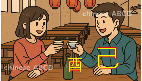 酉(닭 유)는 술잔을 표현한것이고, 己(기)는 다른 사람없이 단독으로 하는 행동을 강조합니다.