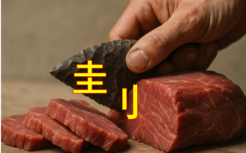 刲(규)한자는 칼로 베는 것으로 “뾰족뾰족한 돌칼로 자르는 모습”으로 표현했습니다.