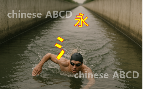 泳의 구성 중 永 자는 흐르는 물줄기와 그 속도감을 나타냅니다. 泳은 이 永에 氵(물 수)가 더해져, ‘물길을 건넌다’는 의미를 가지며,