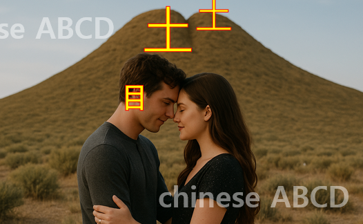 睦 (화목할 목)한자는 “눈을 가까이 해 화목한 모습” 의미있어 ” 붙어있는 언덕처럼 두 사람이 눈을 마주하는 모습 ” 으로 표현했습니다.