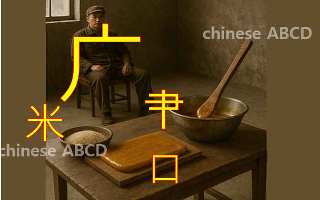 특히 엿을 의미한 것으로 “쌀(米)로 만든 엿기름을 주걱으로 저어(聿) 굳힌 뒤, 오래 응고(口)시키는 모습”으로 표현했습니다.