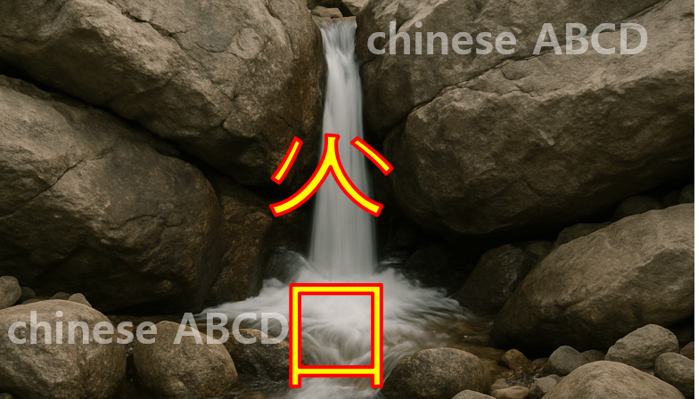 아래쪽 口(입 구)는 오랜시간 물의 흐름으로 만들어진 모양임을 형상화 한것이다.
